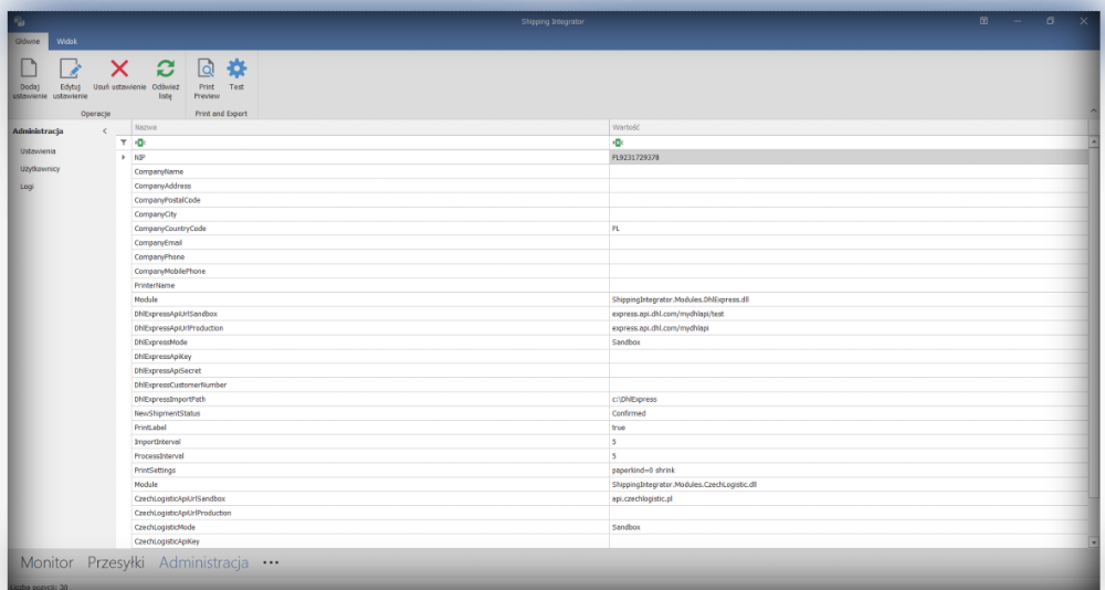 - automatyczny (w zadanym interwale) import przesyłek i ich przesyłanie do systemów zewnętrznych